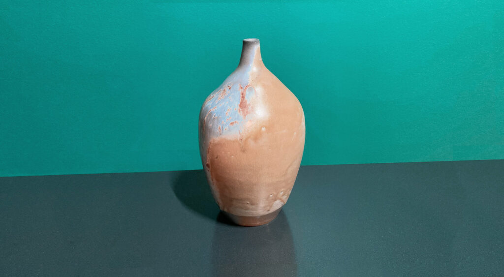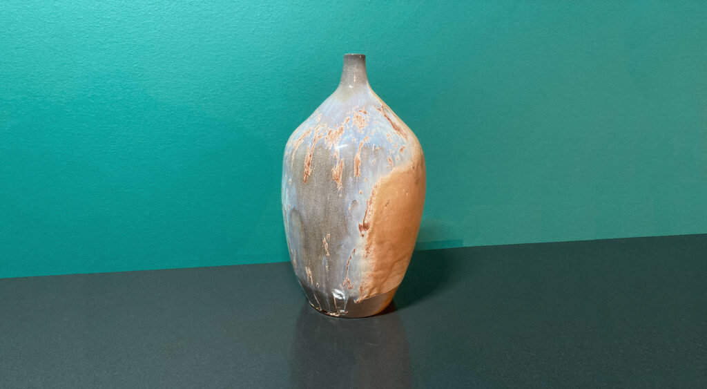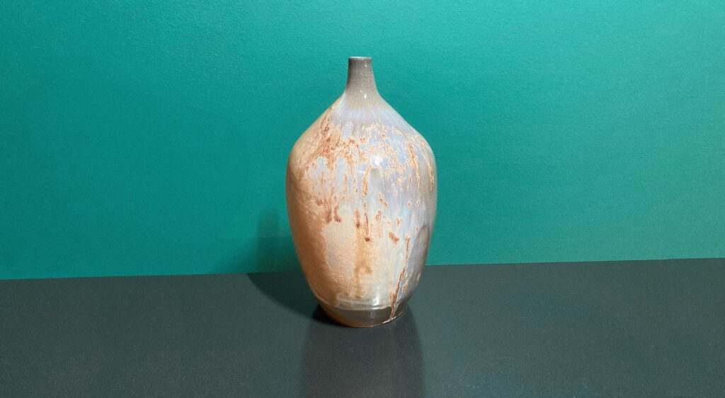 prevrandom claynextEthereal Vase#0333 5.75″w x 10″h 9lb B-Mix Δ 10 Mayco SW 197 Baccera Clear inside Δ 10 soda Types of StuffClayWoolDrawFood